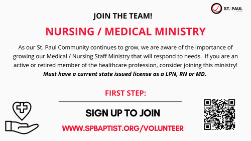 As our St. Paul Community continues to grow, we are aware of the importance of growing our Medical / Nursing Staff Ministry that will respond to needs. If you are an active or retired member of the healthcare profession, consider joining this ministry!